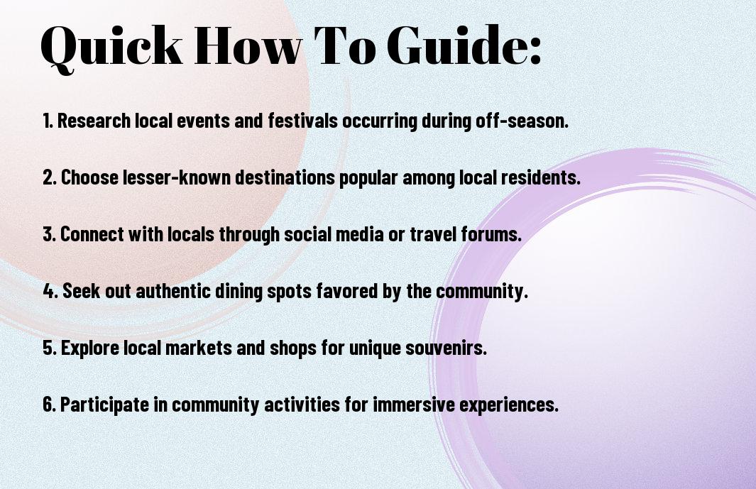 Conclusively, experiencing off-season travel like a local involves a shift in your mindset and approach. Embrace the slower pace of life, engage with community events, and seek out local dining and activities that reflect the culture. By traveling during off-peak times, you enhance your chances of discovering hidden gems and enjoying authentic interactions free from the tourist crowds. Your journey will not only be more affordable but also richer and more meaningful, allowing you to create lasting memories that resonate with the true essence of your destination.