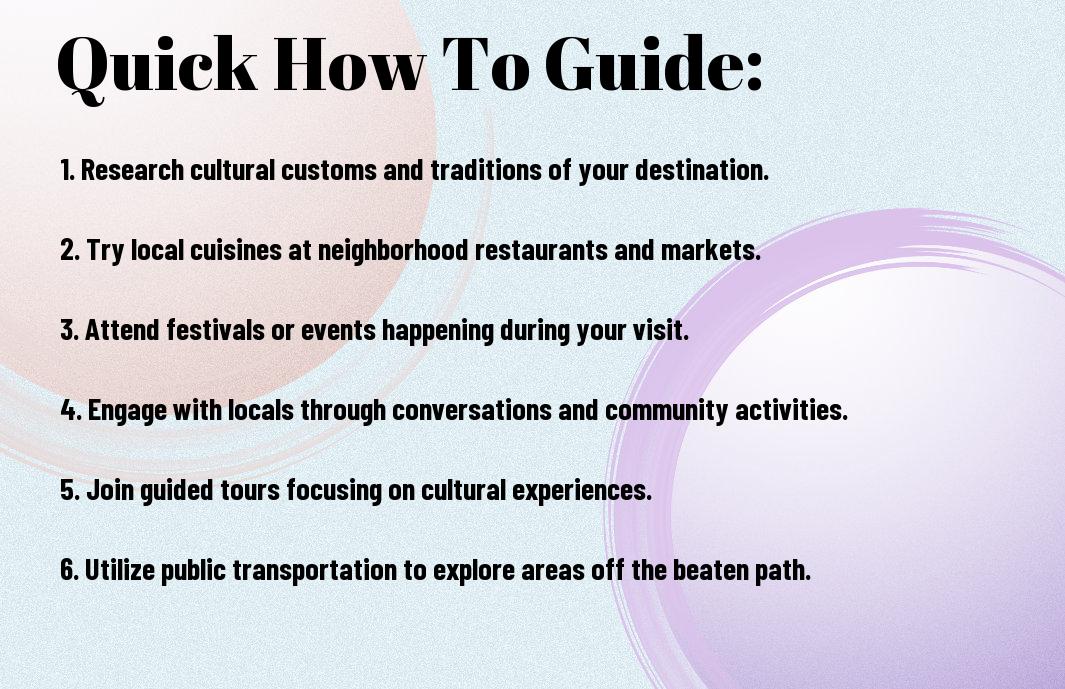 Experience the vibrant tapestry of local culture by immersing yourself in the traditions and daily lives of the places you visit. Engaging with your surroundings not only enriches your travels but also fosters meaningful connections with the people you encounter. From savoring authentic cuisine to participating in cultural ceremonies, this guide will provide you with practical tips on how to dive deep into the heart of local life, enhancing your journey and broadening your perspective. Prepare to create unforgettable memories that go beyond typical tourist paths.