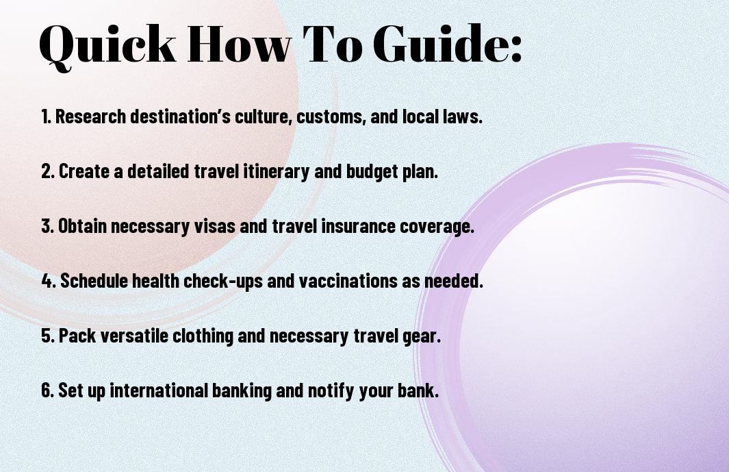 This guide will help you navigate the imperative steps to prepare for long-term international travel, ensuring you have a smooth and enjoyable experience. From planning your itinerary and understanding visa requirements to packing efficiently and arranging for your finances, you’ll find practical tips to make your journey stress-free. By taking the time to properly prepare, you can focus on embracing new cultures and adventures without unnecessary worries.