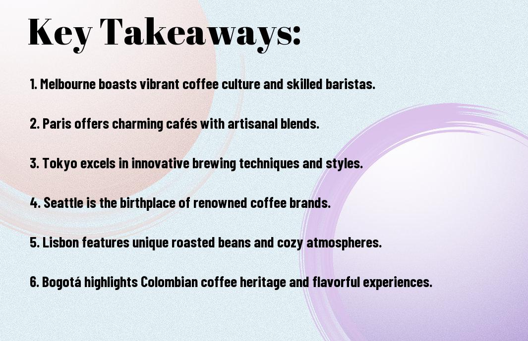 It’s time to initiate on a global journey that celebrates one of your favorite beverages: coffee. If you consider yourself a true coffee enthusiast, exploring international cities known for their vibrant coffee cultures will thrill your taste buds. From bustling cafes to unique brewing techniques, this guide will unveil the best destinations where you can indulge in exceptional coffee experiences. Whether you’re planning your next adventure or dreaming of far-off places, get ready to discover where your coffee passion can take you.