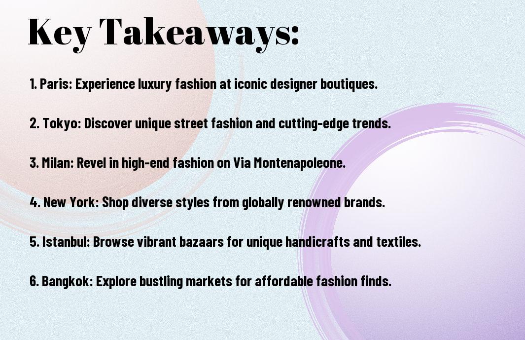 With countless choices available worldwide, your shopping experiences can be as diverse as the cultures they originate from. Whether you crave luxury fashion in Paris, vibrant markets in Marrakech, or tech gadgets in Tokyo, this blog post will guide you through some of the best international destinations tailored for your shopping desires. Explore cities that offer unique finds and exclusive brands, ensuring that your next shopping adventure will be truly memorable. Let’s explore the top locations where your shopping enthusiasm can flourish!