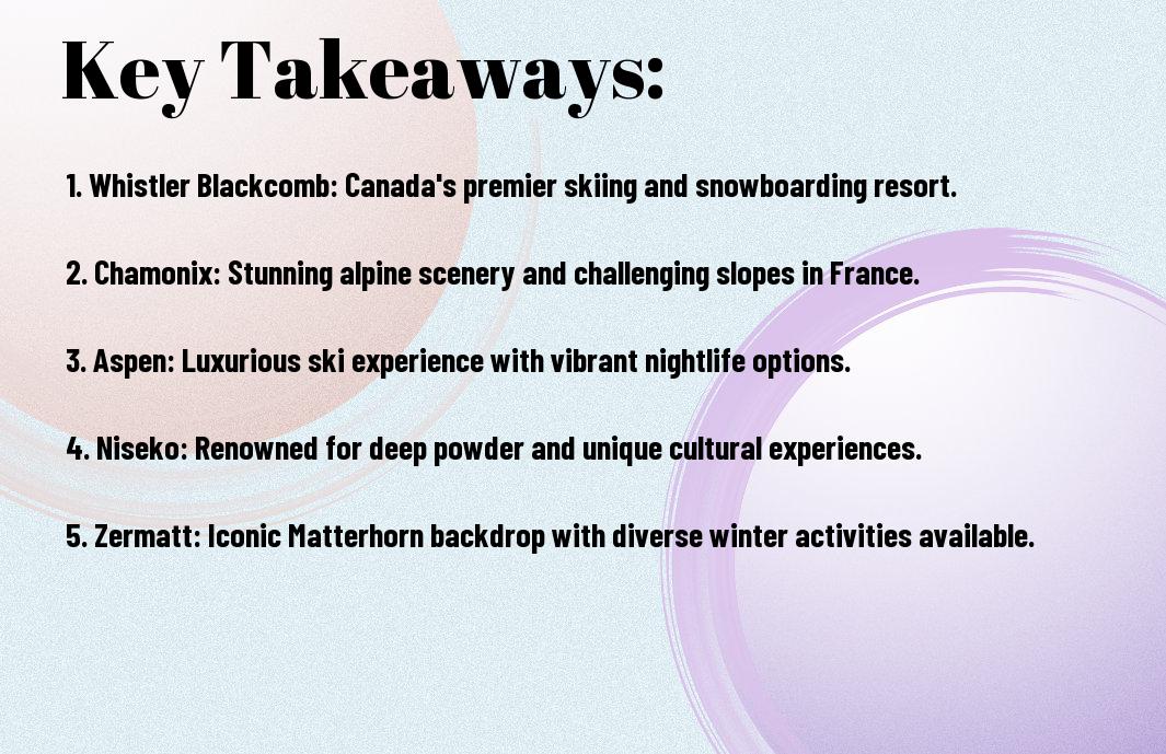 Winter is the perfect time to embrace the thrill of snowy adventures, and exploring the right destinations can elevate your experience. If you’re eager to hit the slopes or enjoy a range of winter activities, knowing where to go can make all the difference. In this post, you’ll discover the top five international locations that cater to your winter sports cravings, offering breathtaking landscapes, exhilarating slopes, and a variety of activities. Prepare yourself for a journey that promises memorable winter escapades and unparalleled excitement.