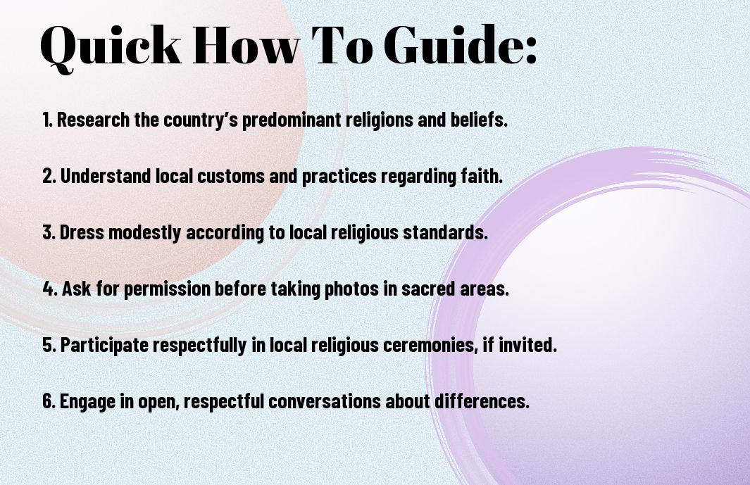 Most travelers encounter diverse religions during their journeys, making it crucial for you to approach these experiences with sensitivity and respect. Understanding the beliefs and practices of the cultures you visit can enhance your travel experience and foster meaningful connections. In this guide, you will learn practical tips to navigate religious customs, dress appropriately, and engage with local communities without causing offense, allowing you to appreciate the rich tapestry of global spirituality while ensuring your journey is respectful and enriching.